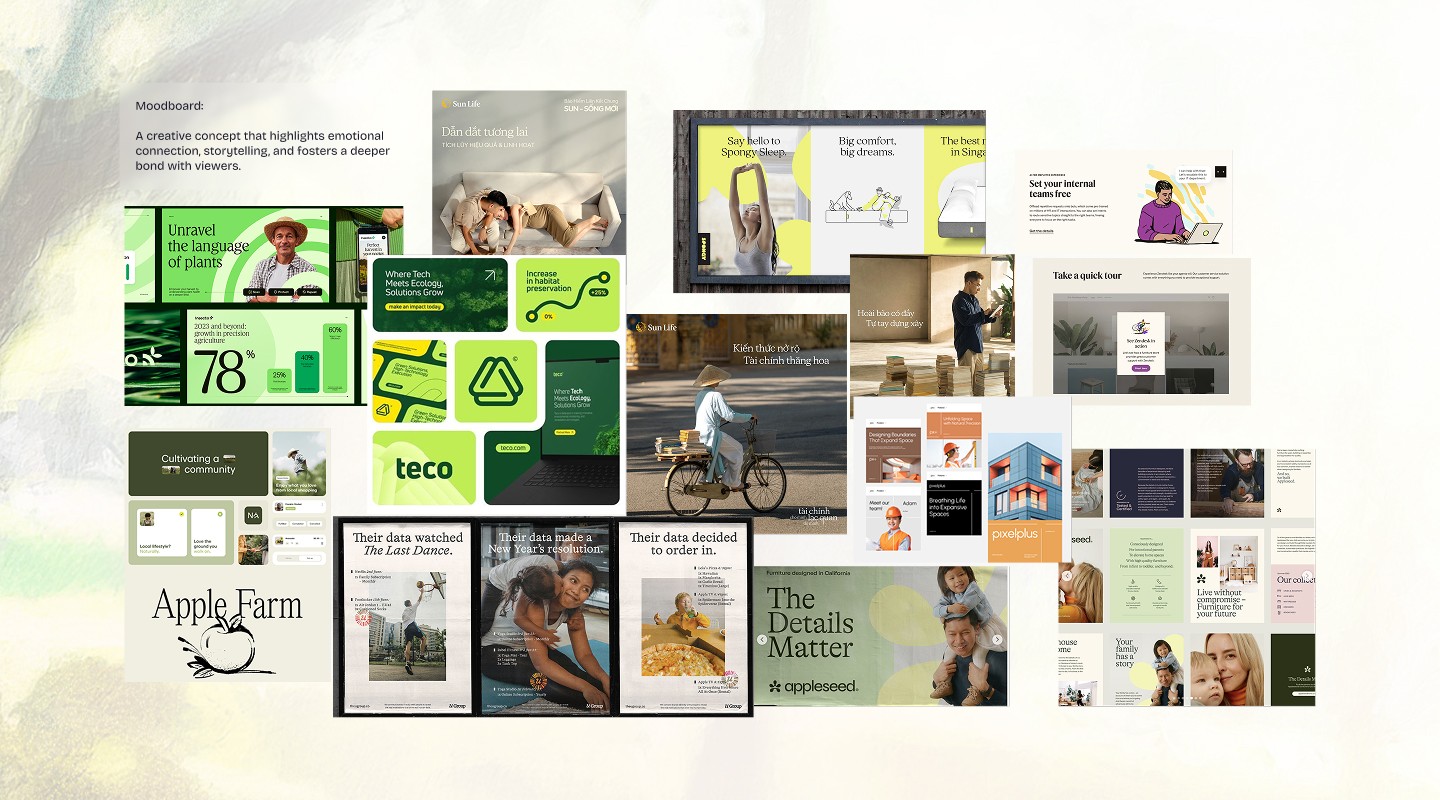 I implemented hand-painted strokes, canvas textures, and a warm, vibrant palette to evoke authenticity, hope, and maturity. Paired with real, candid imagery of people at work, not overproduced stock photos. Helping the brand feel relatable and authentic.