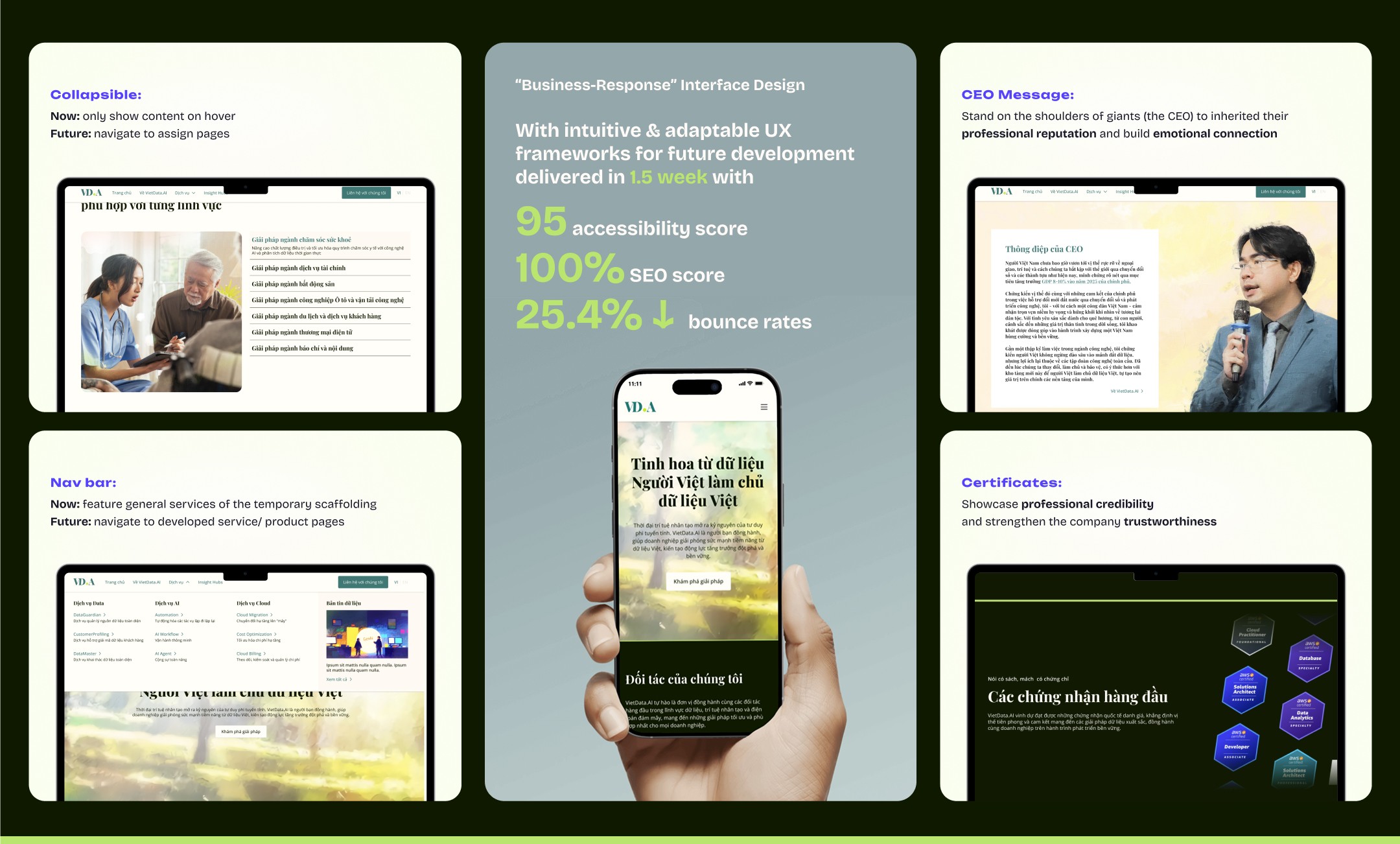 Through discovery workshop, I identified VDA’s guiding vision: empowering Vietnamese businesses to own their data potential. As I studied their workflow, it became clear that their value comes from how they work, they focus on tailor-made solutions, continuous collaboration, and a deep understanding of each client’s context. This positions them as a trusted partner shaping Vietnam’s data landscape.