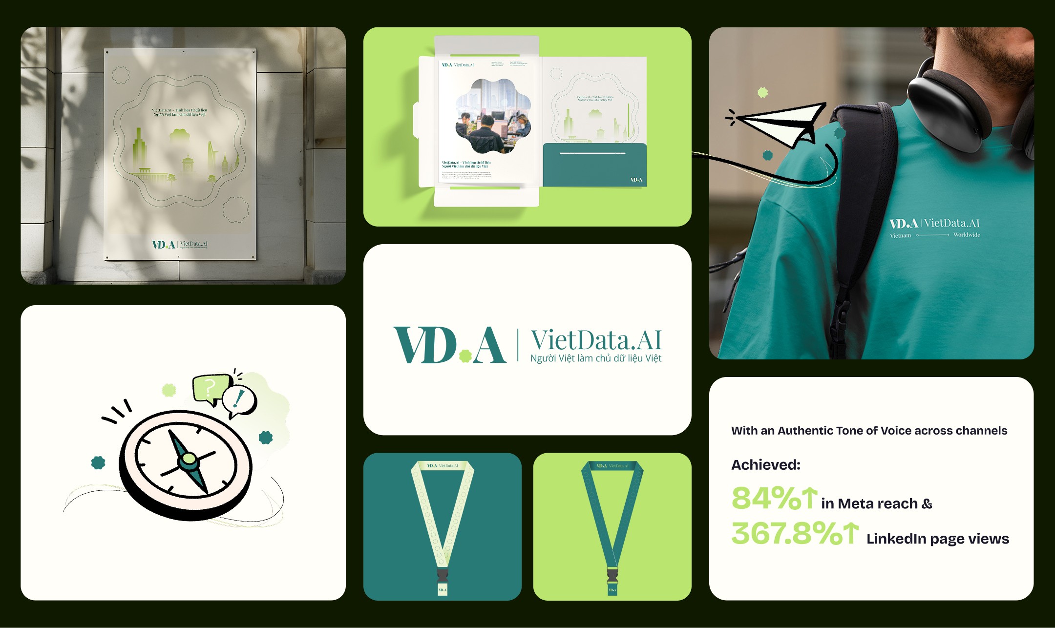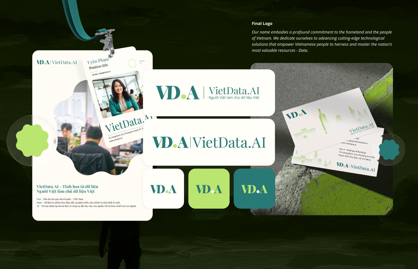 VietData.AI was founded to empower Vietnamese businesses by helping them unlock the value of data in a market dominated by major corporations. As a new data and AI startup, VDA needed a distinctive brand presence to stand out and clearly communicate its vision within Vietnam’s crowded tech landscape.