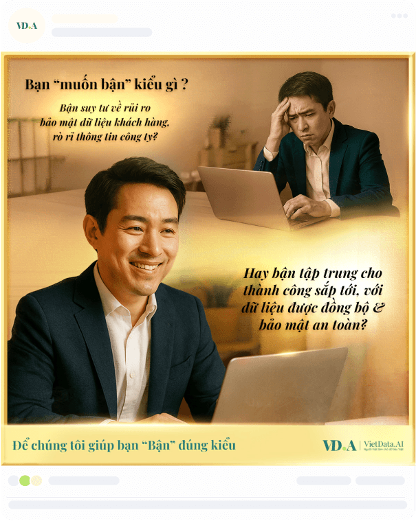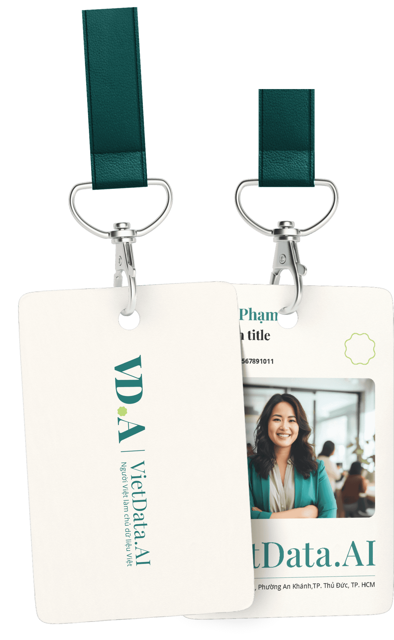 The VietData.AI logo cuts through tech clutter with intentional minimal touch.