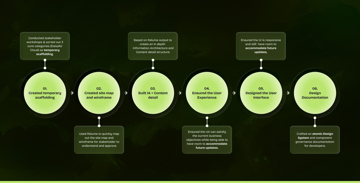 During this time, I was literally bouncing from team to team, from data & BD to clarify the company scope of work, to the dev team, to QA their development. But it’s worth it because I cut down the website deliverables by half, while still producing a “future-ready” website and I got to play around with Relume.