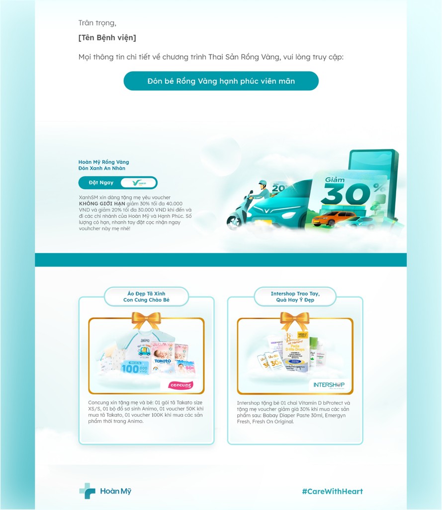 Develop a unified obstetrics campaign for Hoan My’s participating hospitals, ensuring compelling messaging and promotions for expecting mothers during the Year of the Dragon, while remaining flexible for each location’s specific needs.